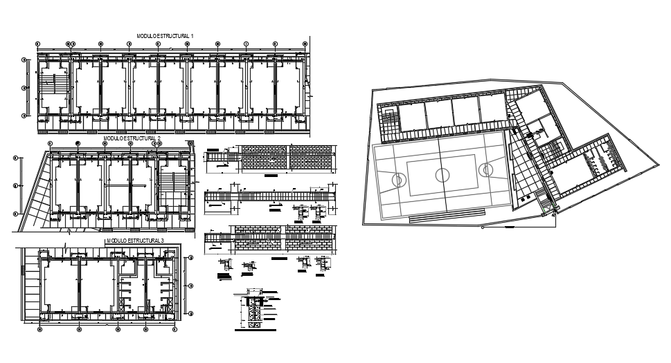 download college plan with dimension detail in autocad file; includes a site plan of the college building and structural plan.
