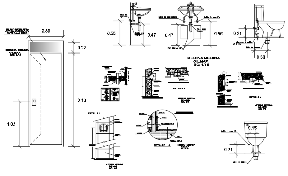 Download Washbasin drawing dwg file; includes installation details with sectional view and elevation view in AutoCAD file.