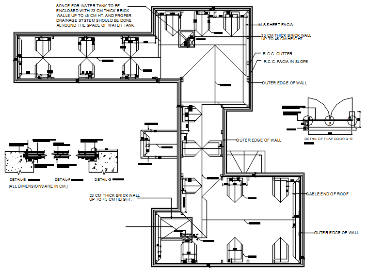 School Building Layout Plan DWG File which includes detail of brick wall, the outer edge of the wall, roof plan and, RCC detail. download AutoCAD file and use it for CAD presentation.