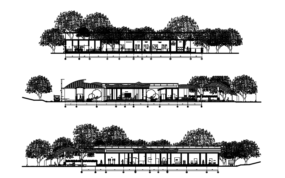 Download Hospital Building Elevation Design CAD file which provides detail different side elevation design with dimension detail and hidden line.
