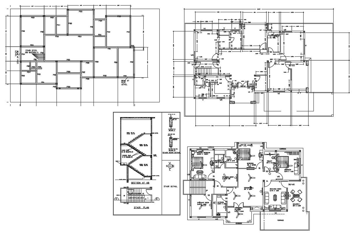 Bungalow drawing with detail dimension in dwg file which includes detail of electrical fixtures and fittings, detail of plinth beam layout plan, etc.