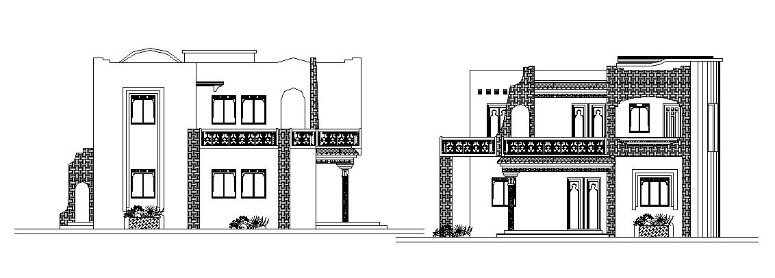 Drawing of 2 storey bungalow elevation in dwg file