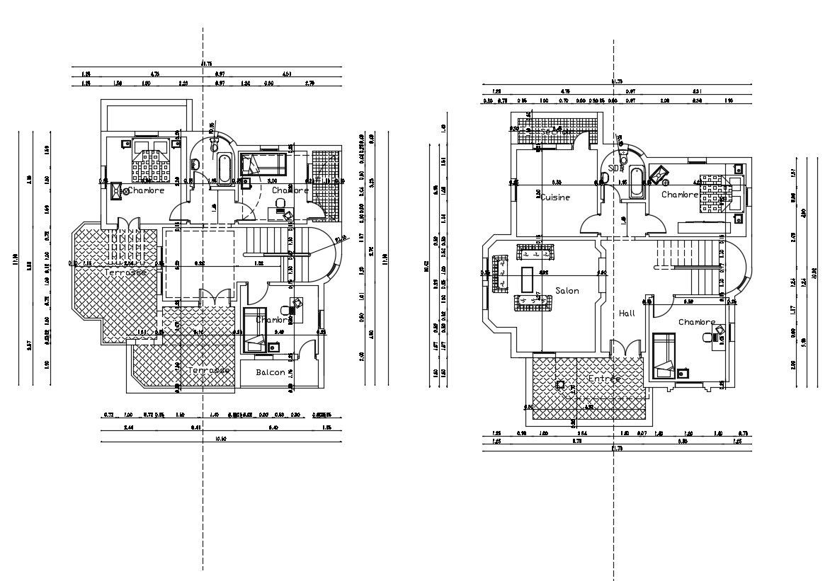 Design of bungalow with detail dimension in autocad which includes detail of drawing room, bedroom, kitchen, dining room, bathroom, toilet, etc.
