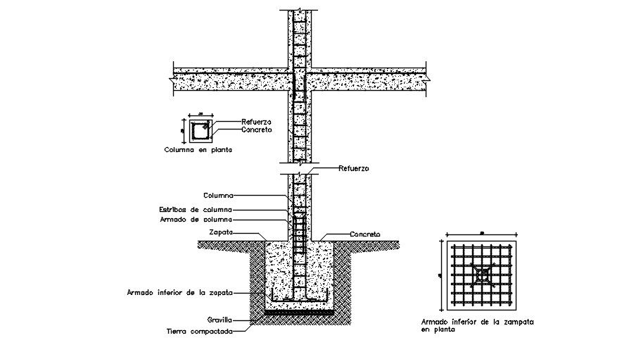 Drawing of foundation structure with detail dimension in dwg file which includes detail of reinforcement, detail of column bars, etc.