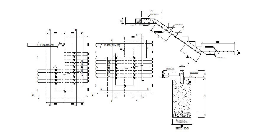 Drawing of Staircase design with detail dimension in dwg file which provides detail of sections, staircase plan, etc.