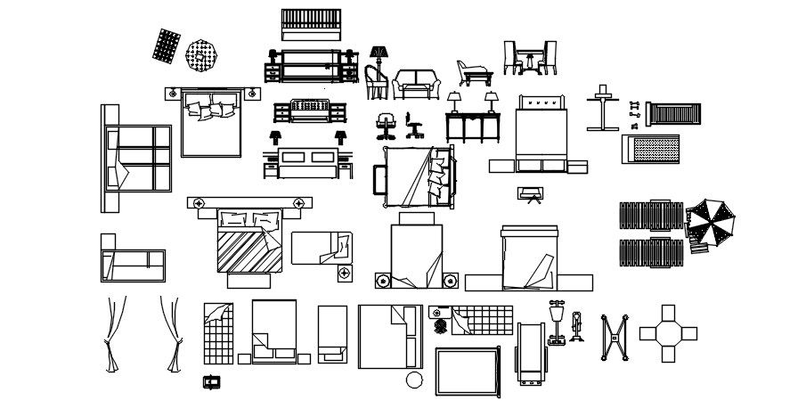Autocad drawing of furniture design which includes detail of bed design, sofa design, cupboard, table, chairs, etc.