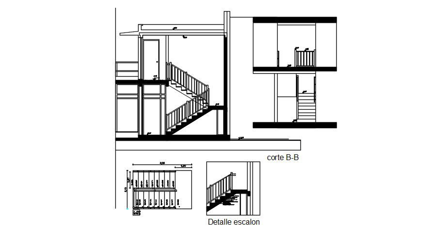 House Section Drawing In DWG File which includes detail of floor level, detail of the different sections, detail of staircase design, etc.