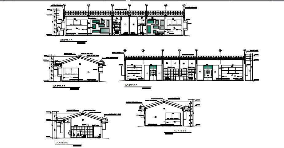 Building Section Plan In AutoCAD File that shows building different sectional details along with floor level details and leveling details. Dimension and staircase details also included in drawings.