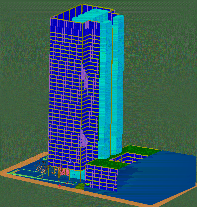 3D Commercial Building Elevation with CAD Drawing in DWG File