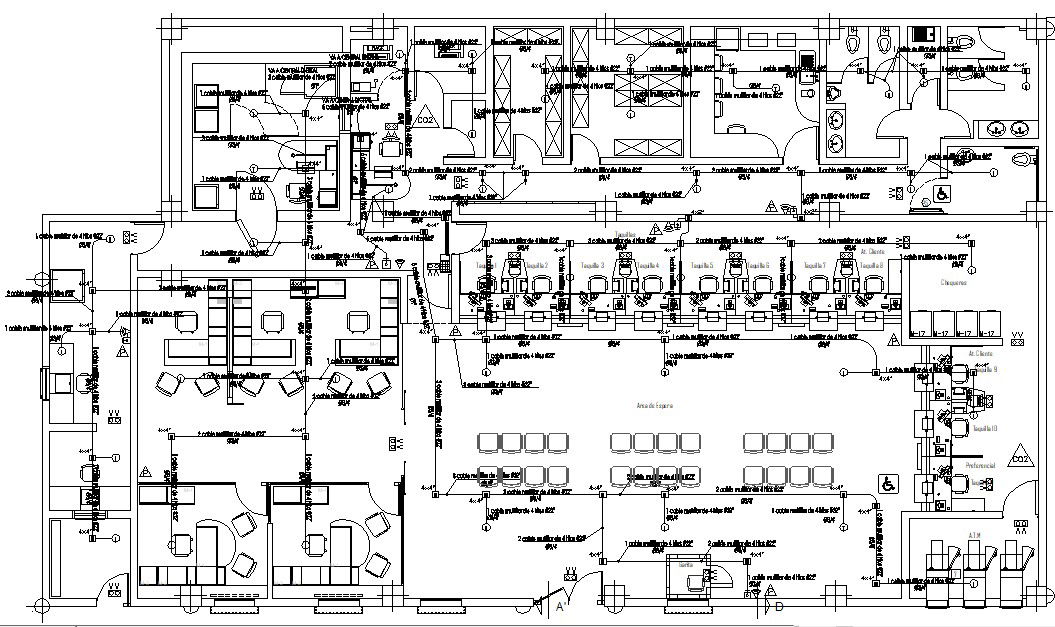 Office building plan with detail dimension in AutoCAD file which includes detail of different department, detail of furniture, etc.