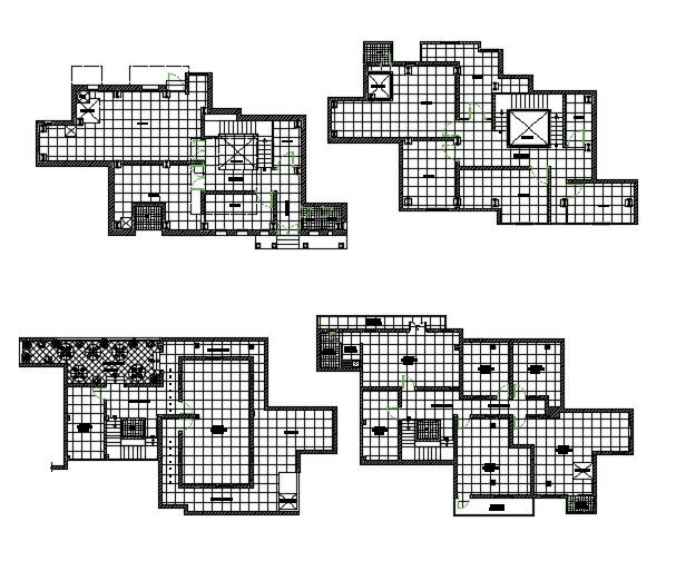 Shopping center floor plan in DWG file which includes detail of first-floor plan, second-floor plan, third-floor plan, fourth-floor plan, etc.