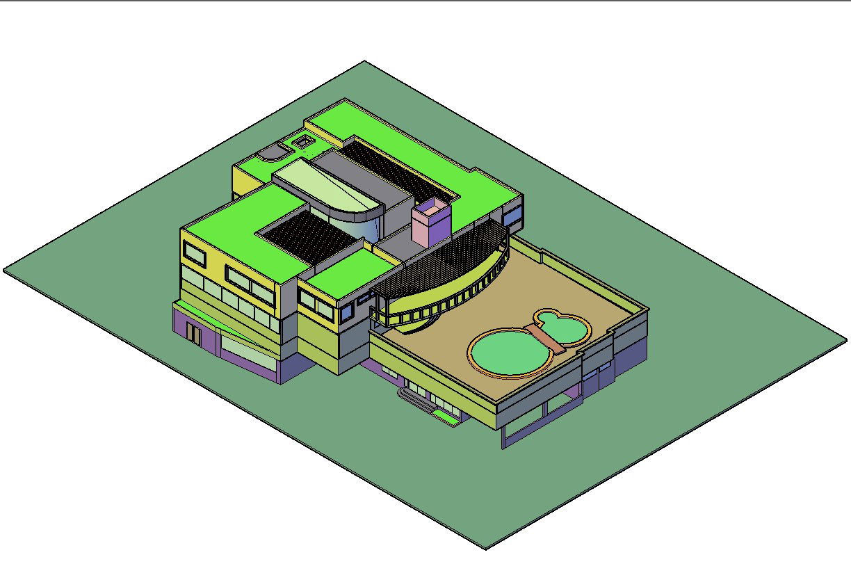 3D House with swimming pool DWG file; 3d house model plan elevation design with swimming pool. download 3d AutoCAD house model and use it for CAD presentation.