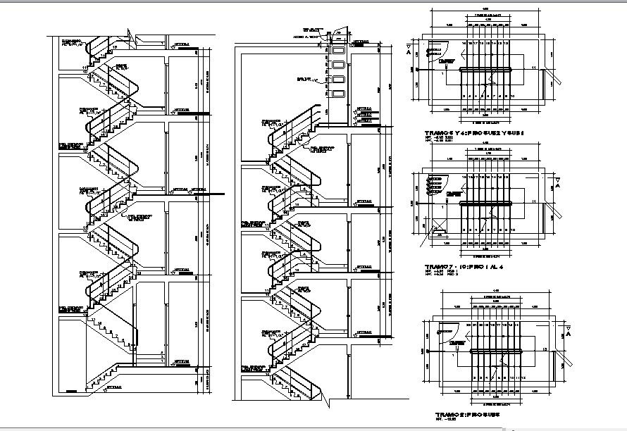 Staircase design with detail dimension in dwg file which provides detail of section drawing of the staircase, detail of staircase plan, detail of floor level, etc.