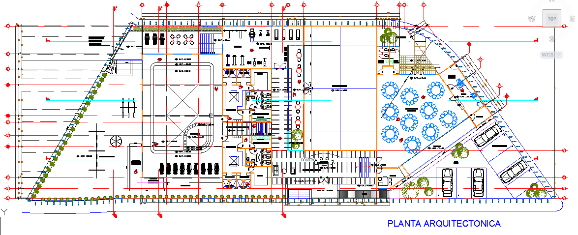 The architecture layout plan with furniture detail, swimming pool, gym, snack bar, mini market and elevation design also have attach image to understand the over all construction building. Modern Club House DWG File, Modern Club House Download file.