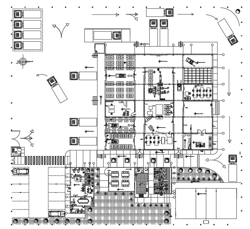 Building design plan in AutoCAD file which includes details of house plans, different departments, detail of front space, garden area, parking area, etc.