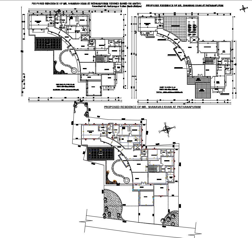 House plan drawing in AutoCAD file which includes detail of the drawing-room, bedroom, kitchen, dining room, bathroom, toilet, etc it also gives detail of different floors.