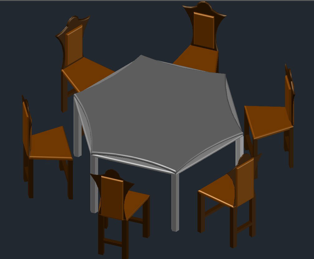 Dining table 3d model in DWG file which provides detail of round shape design, detail of table and chair.
