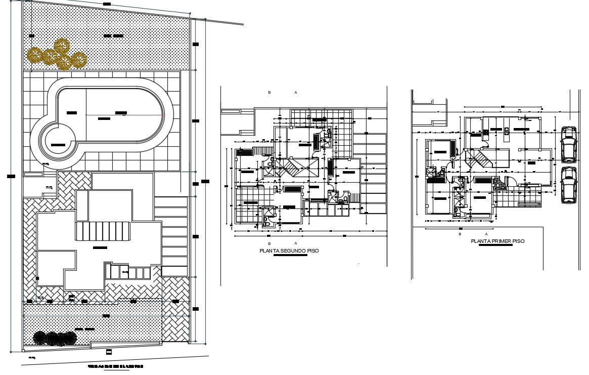 Two storey house plan with detail dimension in AutoCAD which provide detail of drawing room, bedroom, kitchen, dining room, bathroom, toilet, garden area, etc.