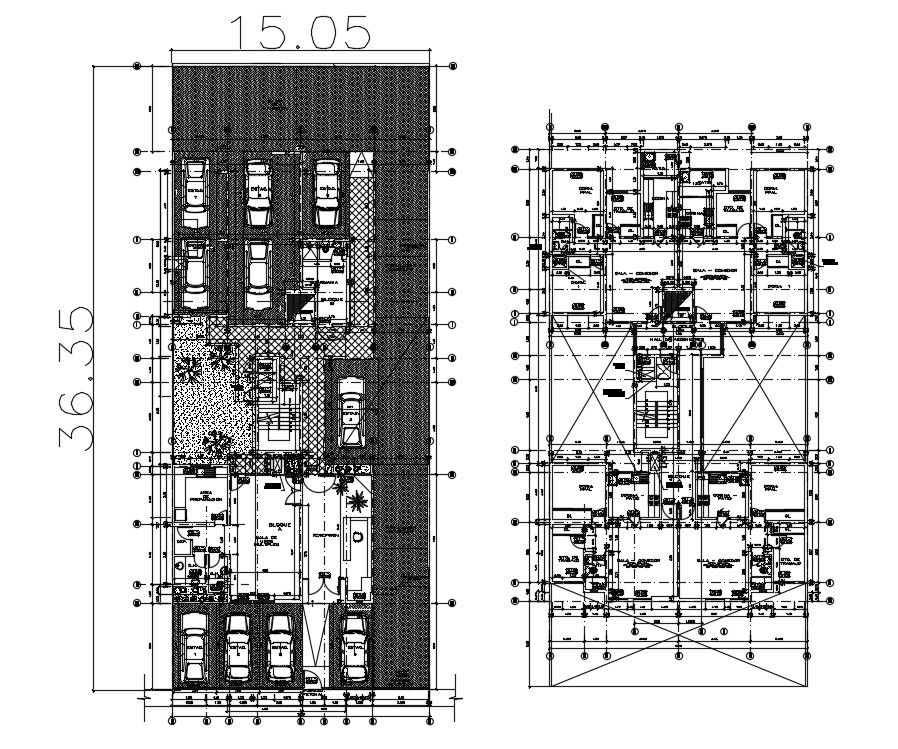 House plans in AutoCAD file plan which provides details of the Drawing room, bedroom, dining room, kitchen, washroom, toilet it also includes details of the parking area and lawn area.