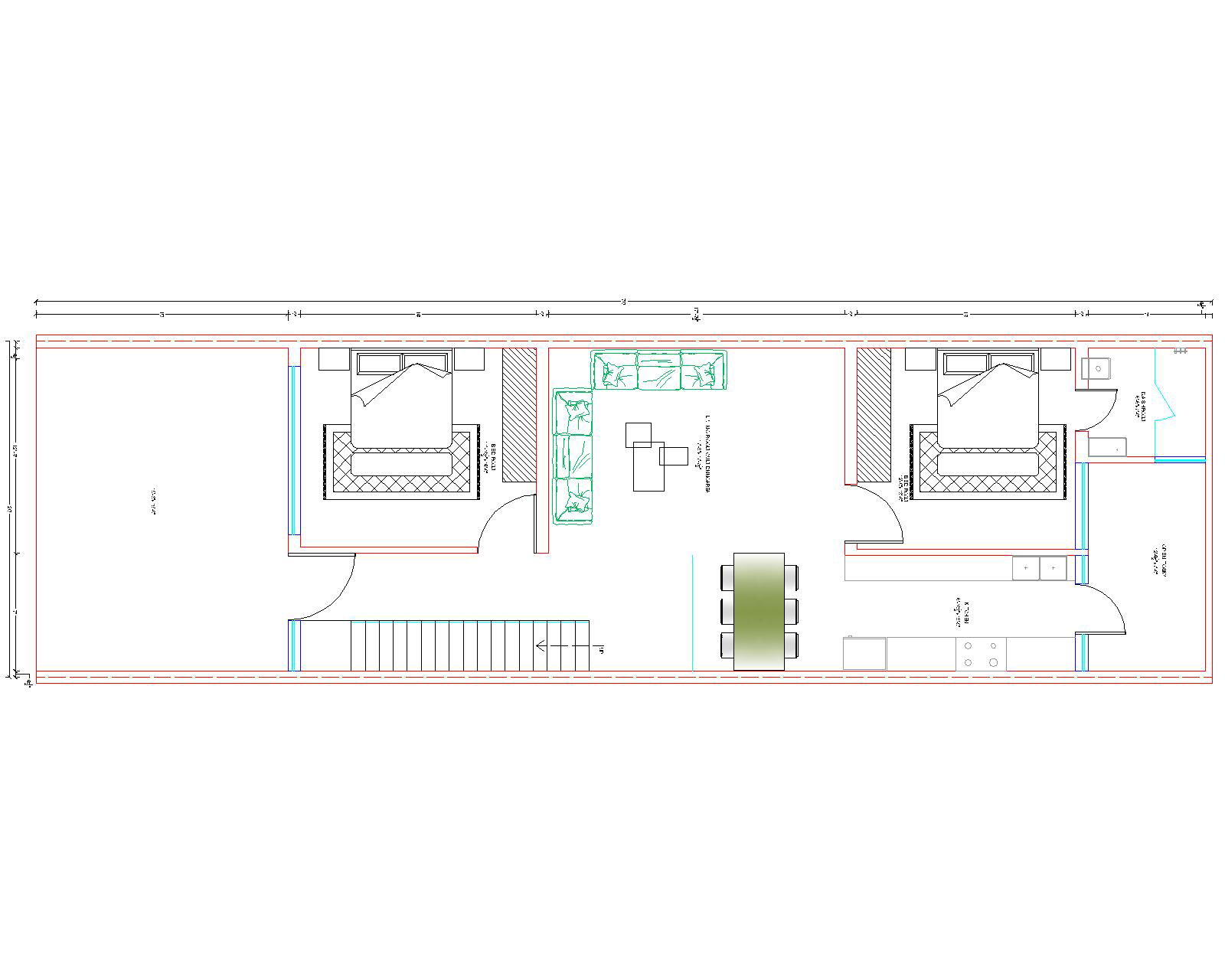 20'x70' House Layout Plan Ground Floor, with furniture detail, washroom fixtures details, Kitchen Details.