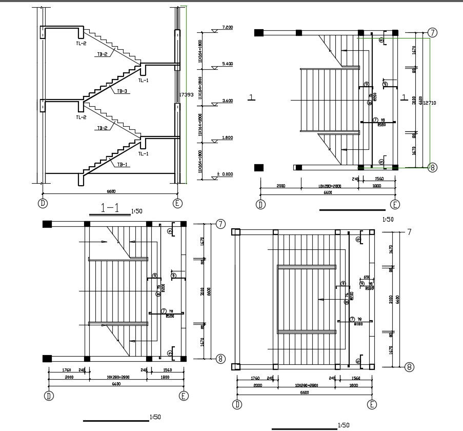 Drawing of staircase plan in autocad which includes the details of staircase section, staircase level, etc.