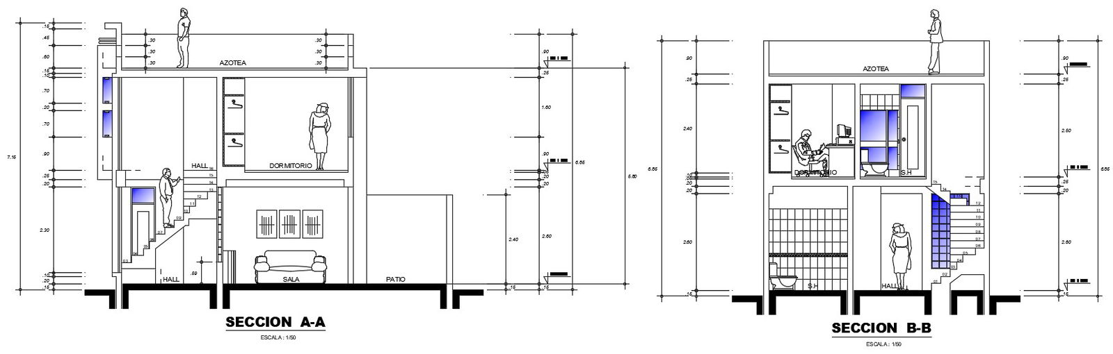 Apartment plan with detail dimension in autocad which includes the details of different section, hall, room, staircase, floor level, washroom, etc it also includes the details of furniture.