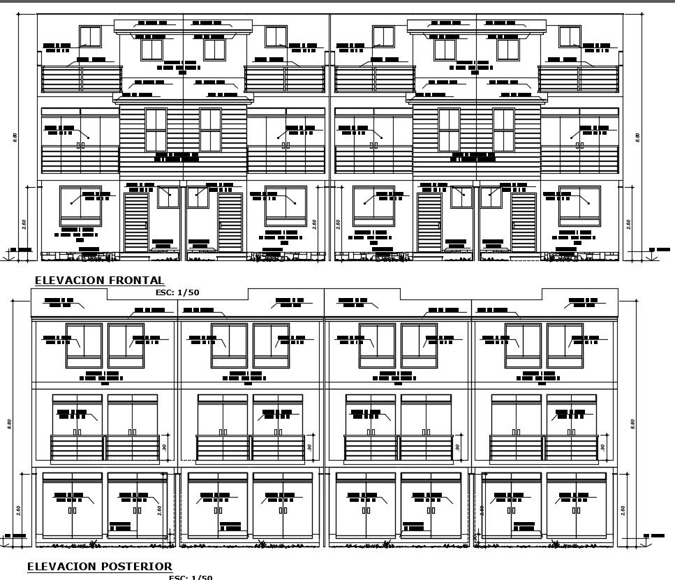 Elevation of an apartment in dwg file which includes details dimension of apartment, it also includes details of the front elevation and back elevation.