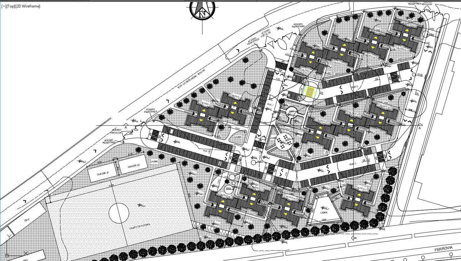 Drawing of multiple blocks in dwg file which includes detail dimension of different type of blocks, soccer field, railroad, pedestrian access, street advisor rock, etc.