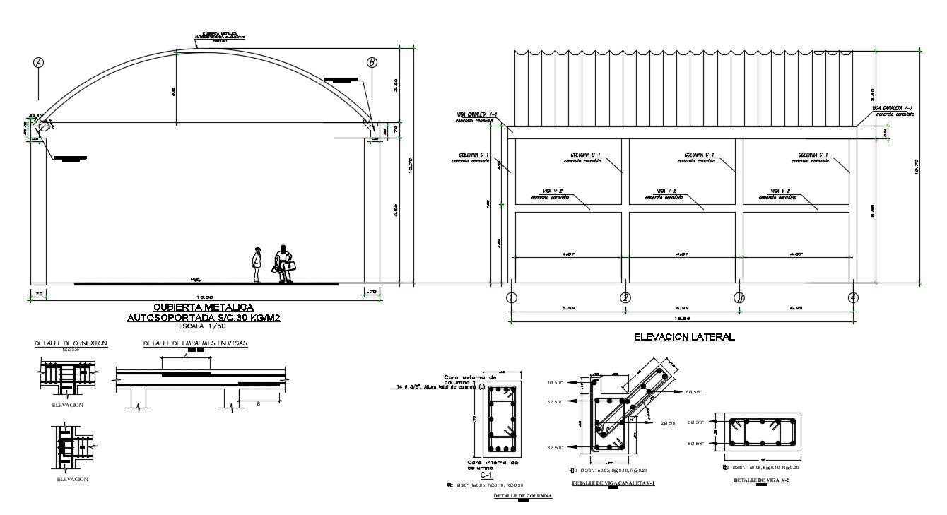 College elevation in autocad which shows the metal cover details, elevation details, back elevation, foundation details, roof details, etc, it also includes the details of floor level.