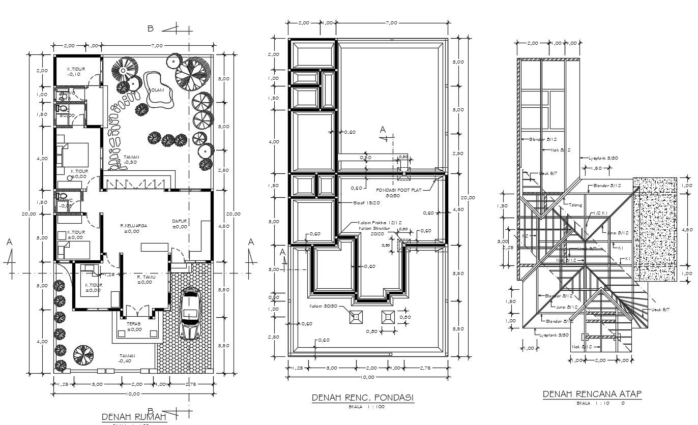 Bungalow plans with detail dimension in dwg file