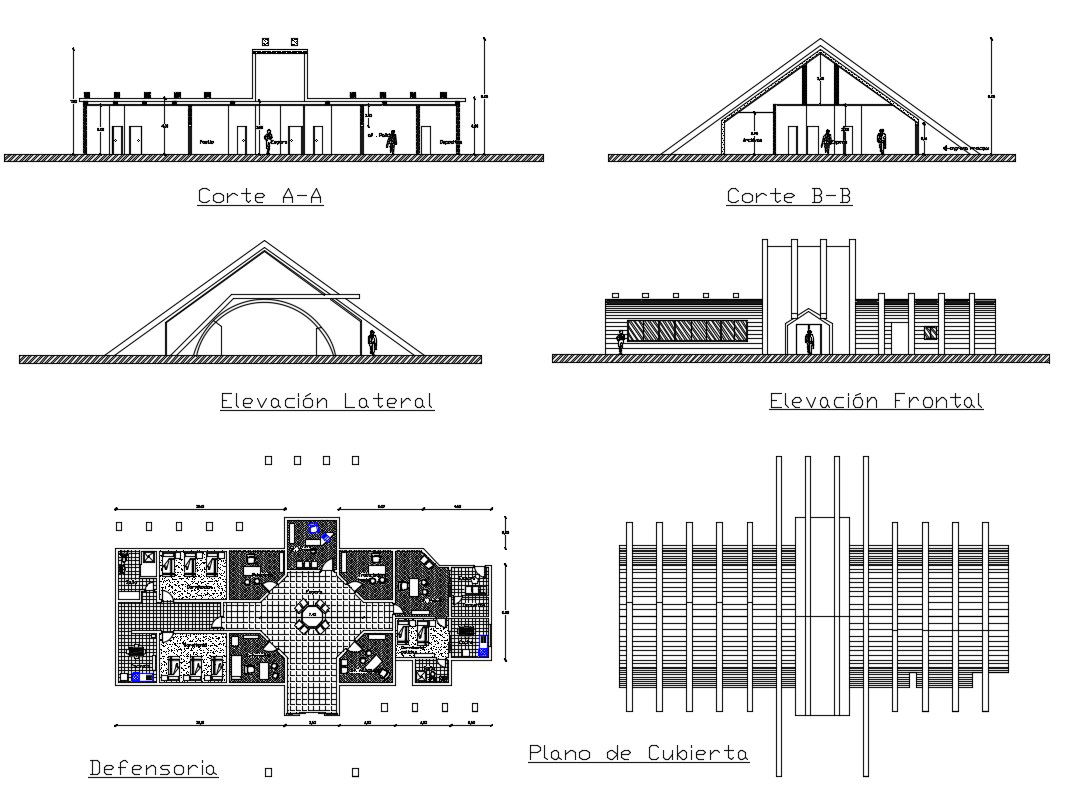 Plans of office in autocad which includes the different types of elevation like front and back, section, etc, it also provides the details of the hall, reception area, working area, meeting room, CEO cabin, washroom, etc.