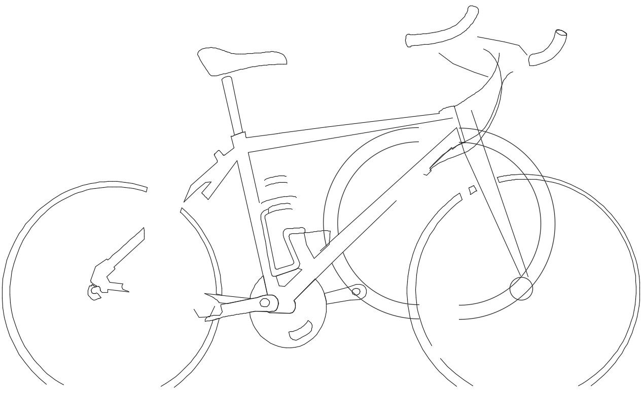 Cad drawing of the bicycle in DWG file which provides the shows the side elevation details.