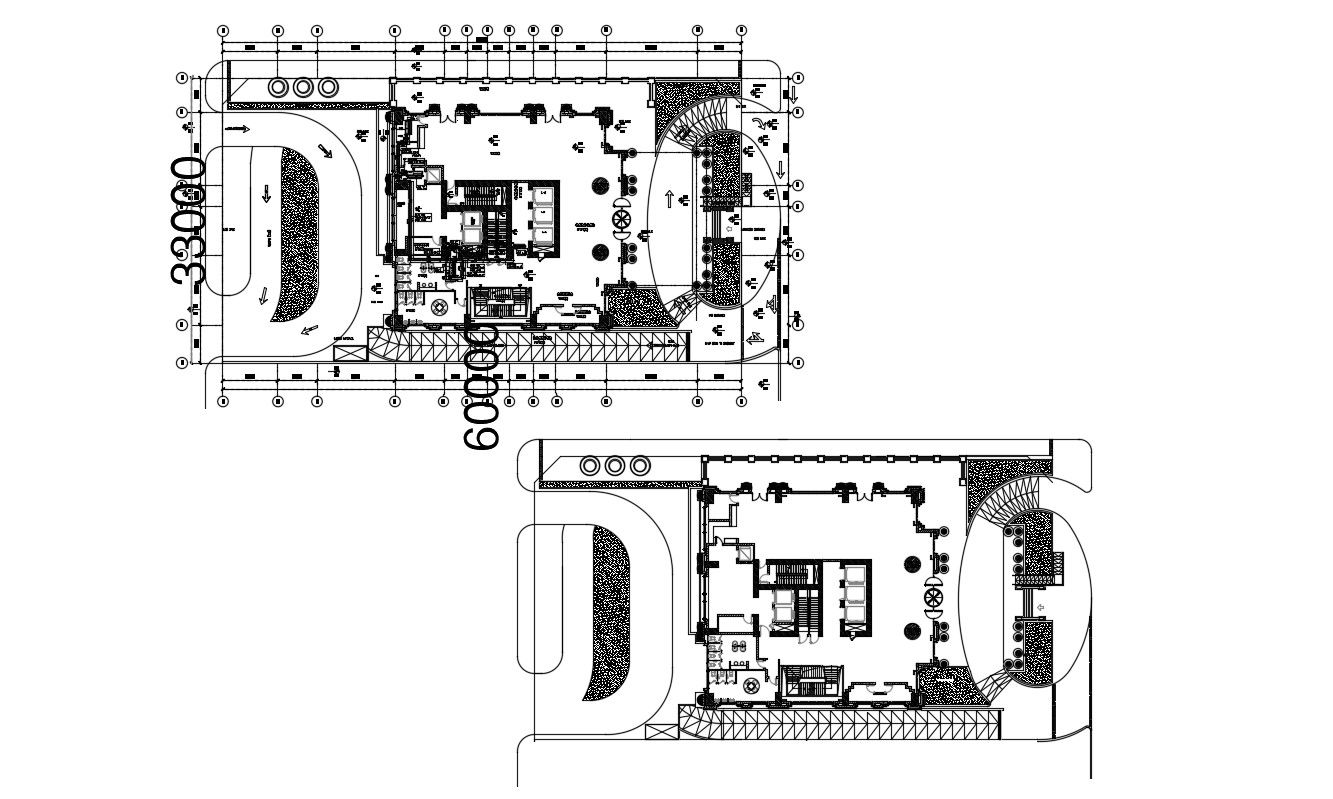 Download Free Hotel layout plan in AutoCAD which includes detail dimension of main hotel entrance, green area, slope, sidewalk, handicapped ramp, basement ramp, administration, reception, waiting area, toilets, washroom, sitting area, cafeteria, lift lobby, service lift, lifts, storage, car entrance.