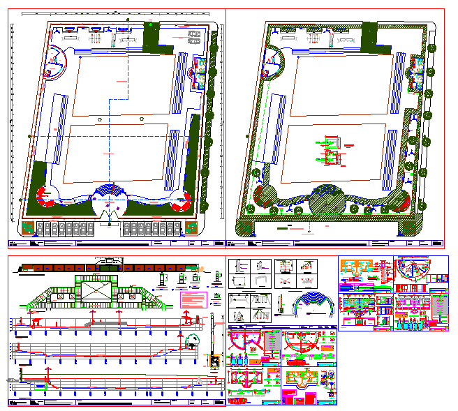 Download the architecture layout plan of sport center include garden, children play garden, parking area, restaurant, basket ball play area and foot ball play area of sport center. Sport Center Project Design, Sport Center Project DWG.
