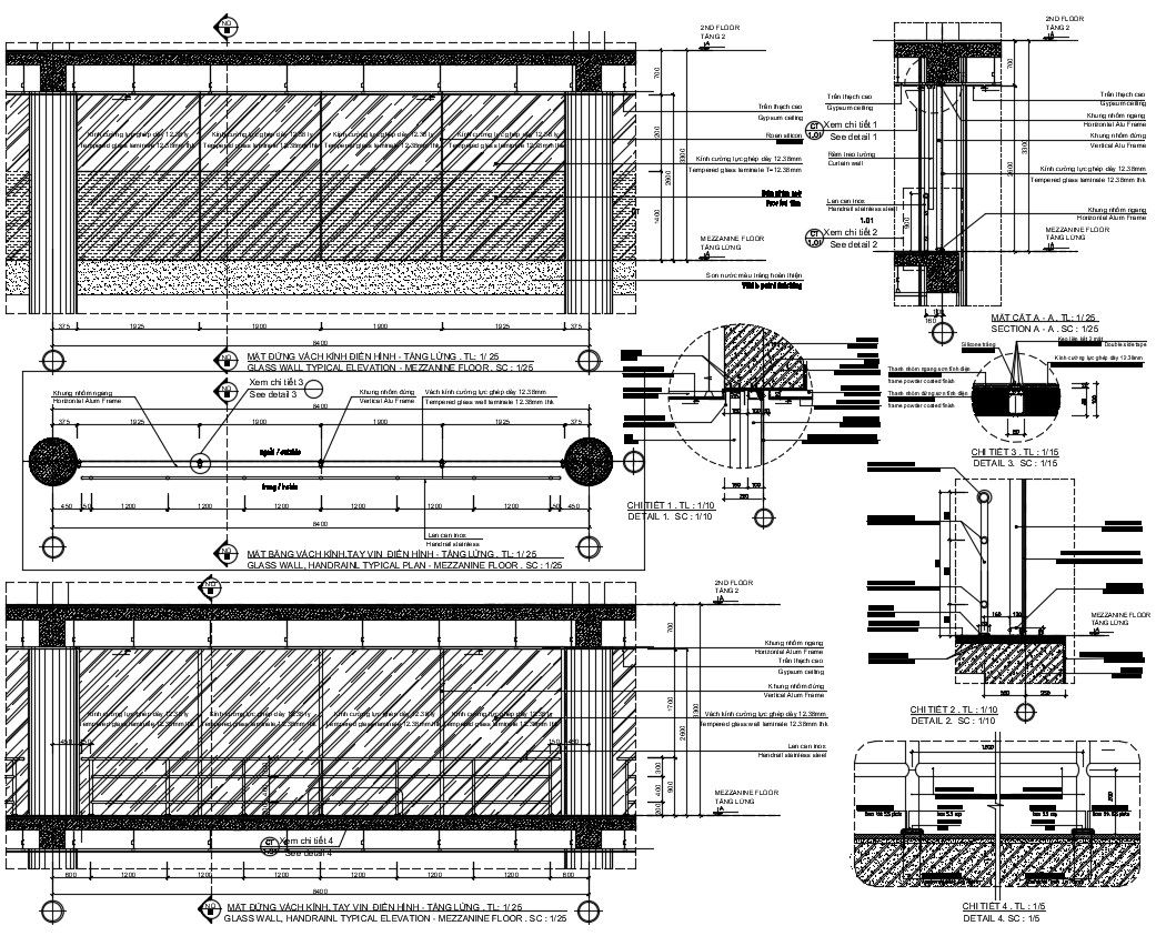 Glass elevation design in DWG file which provides detail of different section or elevation drawing, detail of foundation structure, etc.