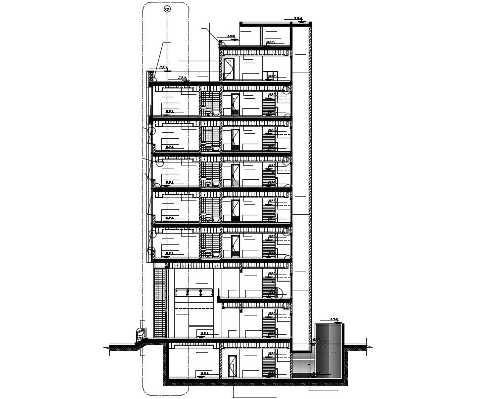 Apartment drawing in AutoCAD file which provide detail of section drawing of the building, detail of door and windows, detail of floor level.