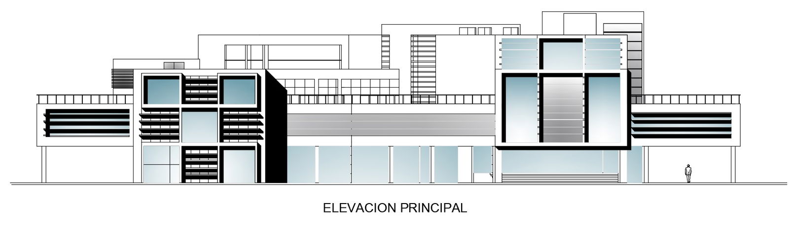 Commercial building hub elevation 2d CAD drawing autocad file that shows building units different sides of elevation like side elevation with floor level entrance door details.