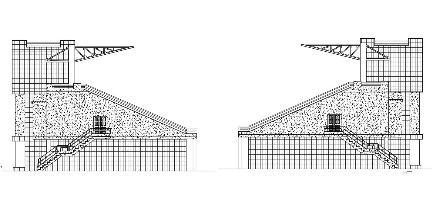 CAD drawing details elevation of stadium dwg file that shows side elevation of audience seating arrangement along with shade details and staircase details.