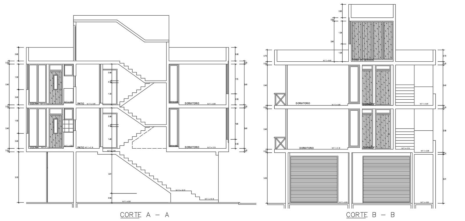 2d CAD sectional drawing of housing apartment dwg file that shows sectional details of building apartment along with staircase details and floor level details.