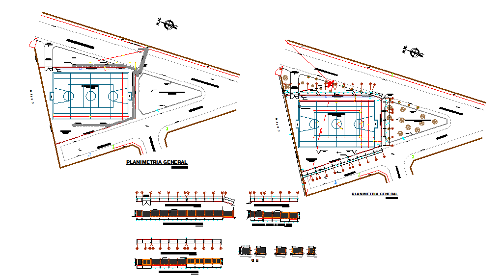 Sport courts Details Design Download DWG. Larger sports clubs are characterized by having professional and amateur departments in various sports such as football, basketball, cricket, volleyball, handball and others, including less traditional sports. This detail and design Draw In autocad format.