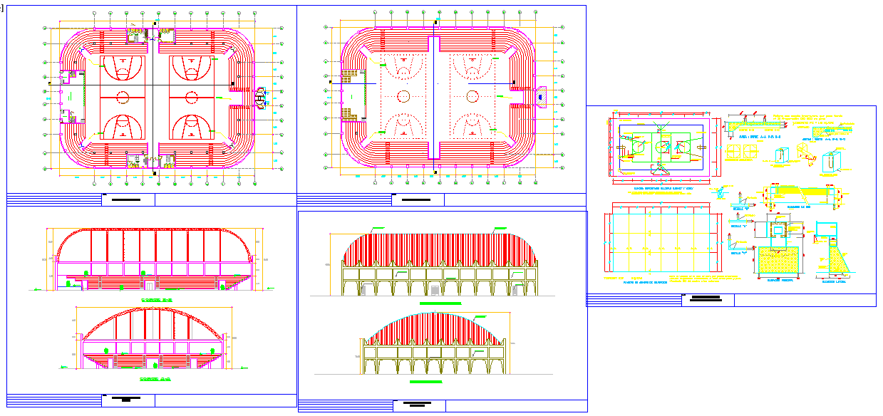 Sport Center - Stadium Design, Sport Center - Stadium Detail file. The architecture layout plan Sports Center with section plan and elevation design in autocad file,