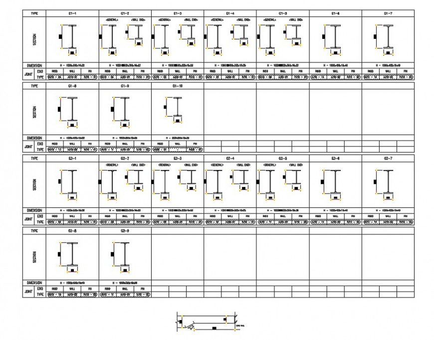 2d cad drawing of steel commonly section view blocks, this is achieved by designing the joints in a steel frame detail, download free cad file and use cad presentation.