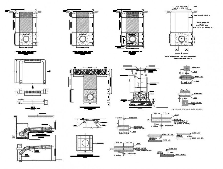 2d cad drawing of Installing a new water line to your house is a project showing that slab out detail, water distribution problem supplying,while improving line running parallel with sewers construction detail, download free cad file of waterline connection section plan detail.