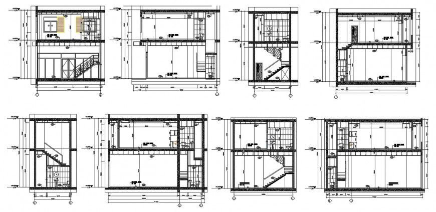 2d cad drawing of 2 story building toilet section view showing that sanitary blocks details of water closet with washbasin, toilet tub and plumbing pipe and tap faucets details along with all dimension detail cad file, download free cad file and use for multipurpose cad presentation.