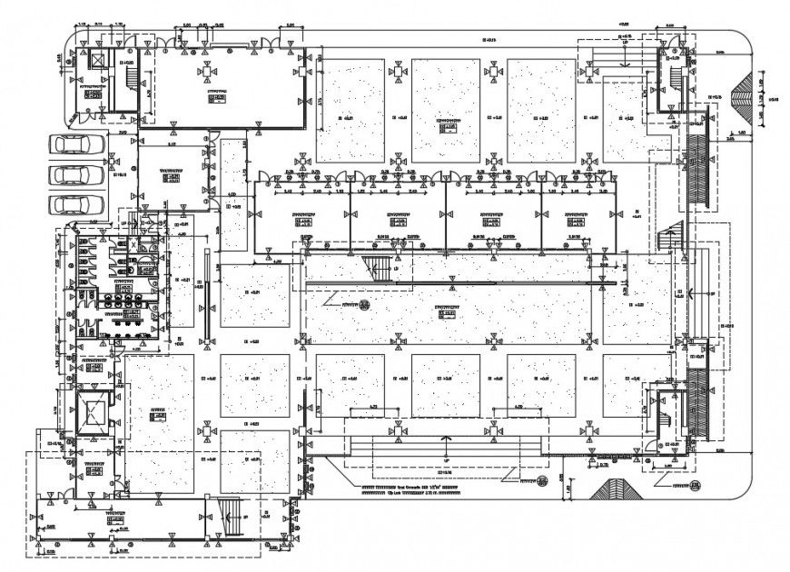 he architecture layout plan has been designing in autocad software, a drawing showing layout plan includes conference building layout plan showing that bathroom, wide hall, different rooms, staircase detail, structure detail and compound wall detail, download free cad file and get more detail about the conference building project.