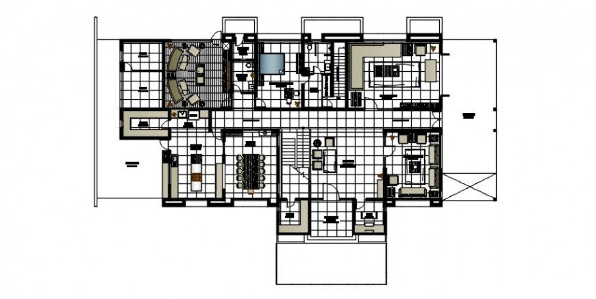 Office furniture planning details. here there is a top view layout plan of a office , modern design layout, sitting area,furniture detailing,contains big meeting room, conference room, cabins , etc