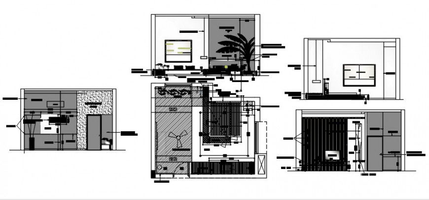 Guest bedroom furniture sectional detail file. Interior sectional furniture detailing . here there is sectional detail of bedroom with wardrobe detailing and tv unit detail, with ceiling layout plan detailing and all interior details