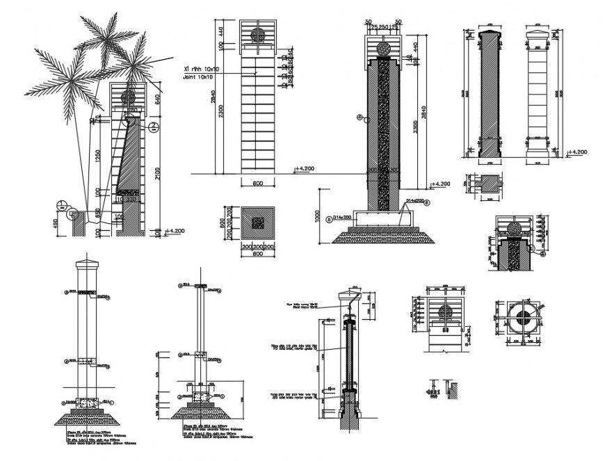 2d cad drawing of compound wall bulb installation cad file includes section plan Grade base concrete 100mm thickness and elevation design of compound wall bulb installation cad file, download free cad file and use for cad presentation.