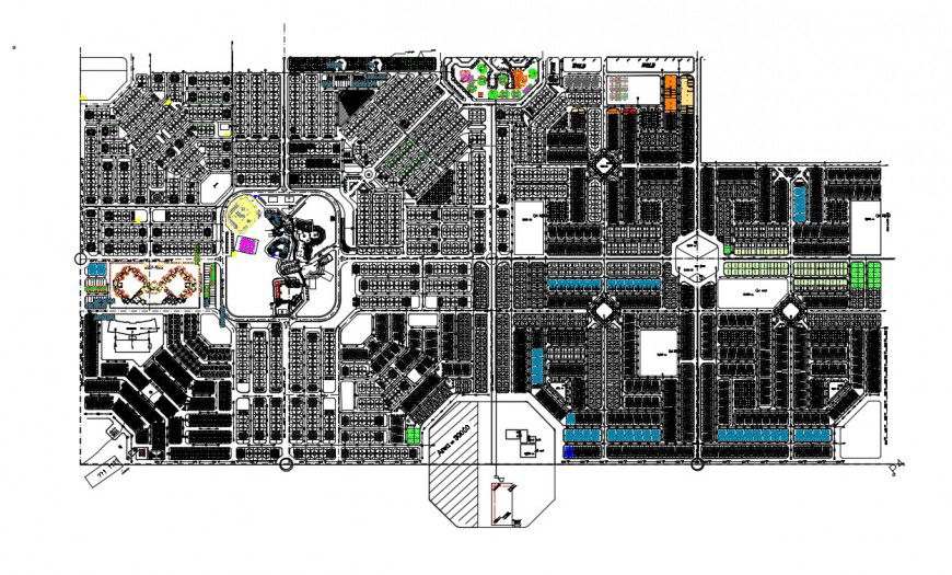 Site plan of raw house autocad which include detail dimension of different areas of the site, raw houses, garden area, and side road details, etc.