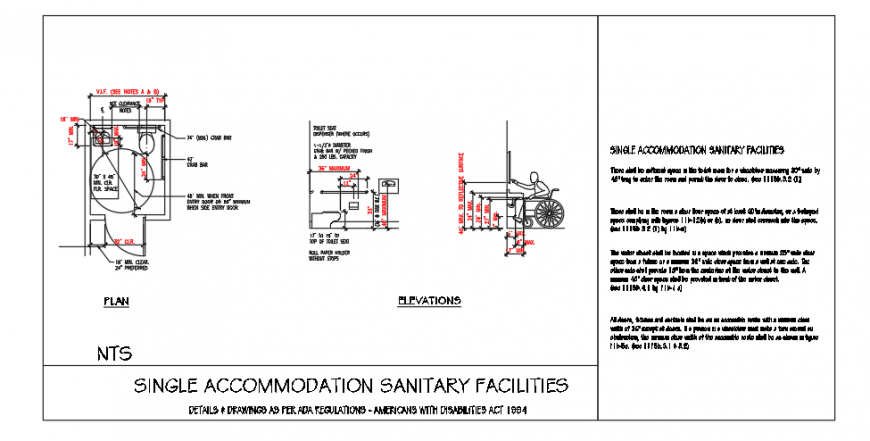 Here the Single Accommodation sanitary facilities design drawing with Plan design, elevation design and section design drawing and general specification also mentioned in this auto cad file.